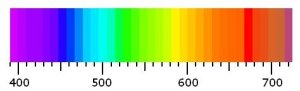 Measuring the wavelength of a Laser Pointer Usual Laser pointers have a wavelength of about 650nm. For safety reasons their radiation output is or should be limited to 1mW. Some with better visibility for the same power are made with diodes emitting at 635nm and some are even available with green light. To determine the wavelength one can compare the colour of the light with a picture of the spectrum with a scale fig 1. |